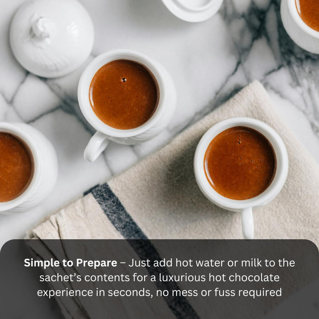 Hot Chocolate Sachet 28g is the easy way to enjoy a rich, creamy cup anywhere. This 10-pack from WoodzyCo Exclusive offers individually wrapped sachets for freshness, ideal for travel, work or home, and available to buy online UK in bulk.